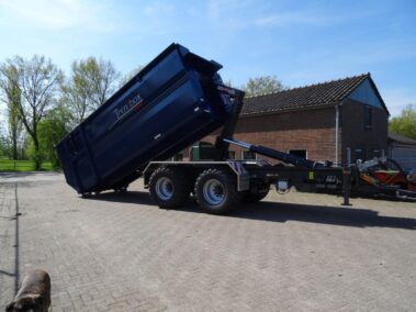 Toplift-HTB Hakenliftsysteme werden mit einem Rahmen aus „Domex“-Stahl gebaut, also superstark und leicht. Die Abmessungen entsprechen den international gültigen Normen (DIN – NEN – CHEM) und sind voll kompatibel mit Hakensystemen aus dem LKW-Bereich. So kann der Ackerschlepper Arbeiten an schwer zugänglichen Stellen verrichten und der Container auf befestigten Flächen auf den LKW umgeladen werden.
